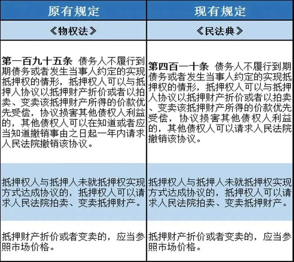 十一、其他债权人对实现抵押权协议的撤销权 根据原《物权法》第195条规定,债务人不履行到期债务或者发生当事人约定的实现抵押权的情形时,抵押权人可以与抵押人就以抵押财产折价或者以拍卖、变卖该抵押财产所得的价款优先受偿等内容进行协议。如协议损害了其他债权人利益,其他债权人可以请求人民法院撤销。在此基础上,《民法典》第410条删去了对其他债权人的撤销权需在“知道或者应当知道撤销事由之日起一年内”行使的限制。