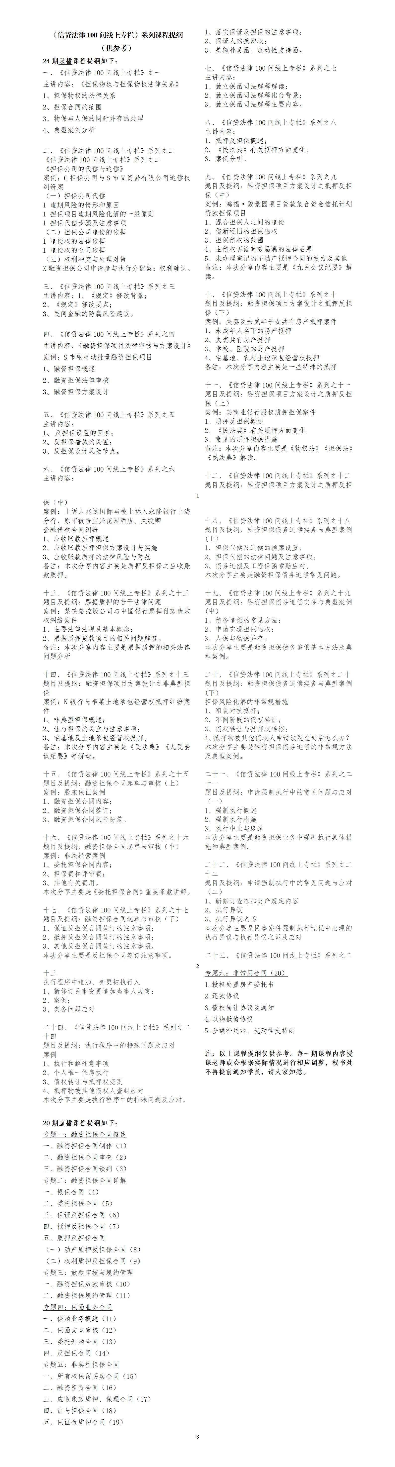 附件: 1.《信贷法律100问线上专栏》系列课程提纲 2.线上培训第一期课程二维码