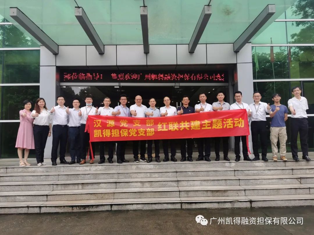 凯得担保党支部联合汉源党支部开展红联共建主题党日活动 发表日期:2022-06-23 来源:广州凯得融资担保有限公司 为进一步推进党建工作与业务工作合力提升,助力中小企业发展,6月14日下午,广州凯得融资担保有限公司党支部(下称“担保支部”)联合广州汉源新材料股份有限公司党支部(下称“汉源支部”)开展“红色引领聚合力 联动共建促发展”主题党日活动,双方近20名党员参加了活动。 活动首先参观了汉源支部公司展厅,汉源支部详细介绍了公司的发展历程、科研团队、产品应用、党建工作等具体发展情况。 参观学习后,双方召开座谈交流会,分别交流了支部建设、业务管理、文化建设等方面的经验做法和建议,达到了相互学习、相得益彰的效果,加强了双方党建业务合作交流。全体党员重温入党誓词,纷纷表示更加明确了自己的初心和使命,充满工作干劲和闯劲。