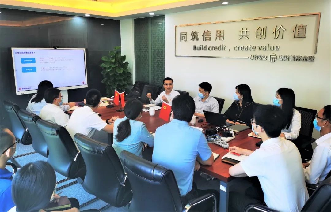 有意义更有意思!粤财普惠惠州担保公司开展“沙龙式”党课 发表日期:2022-06-28 来源:粤财普惠惠州担保 为推进党史学习教育常态化长效化,丰富党课学习形式,引导全体员工把学习成果转化为干事创业的动力、举措和成效,6月23日,粤财担保集团党委副书记刘志成以“从毛泽东调查工作看行研与尽调——《毛泽东选集》导读系列之一”为题,为公司全体员工讲授了一堂别开生面的沙龙式党课。