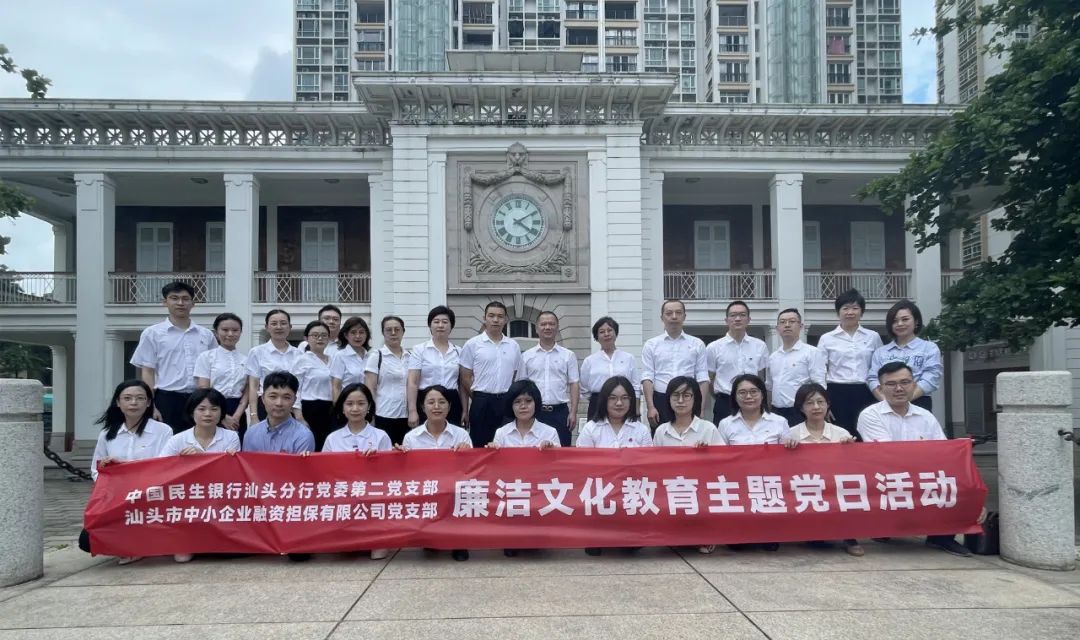 汕头担保与民生银行汕头分行开展党建共建暨廉洁文化教育主题党日活动 发表日期:2022-09-01 来源:汕头担保 为加强基层党组织建设,促进党建与业务互融并进,携手探索深入合作模式,共同提升服务实体经济质效,8月25日,汕头市中小企业融资担保有限公司党支部与民生银行汕头分行党委第二党支部、第五党支部开展“党建互联创先进,共建互联创新篇”党建共建暨廉洁文化教育主题党日活动。民生银行汕头分行党委委员、分行副行长黄哲鑫及汕头担保党支部书记、公司总经理沈琨带领支部党员参加活动。